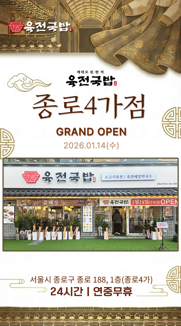 OPEN] 활기찬 서울 한복판, 육전국밥 종로4가점이 문을 열었습니다.